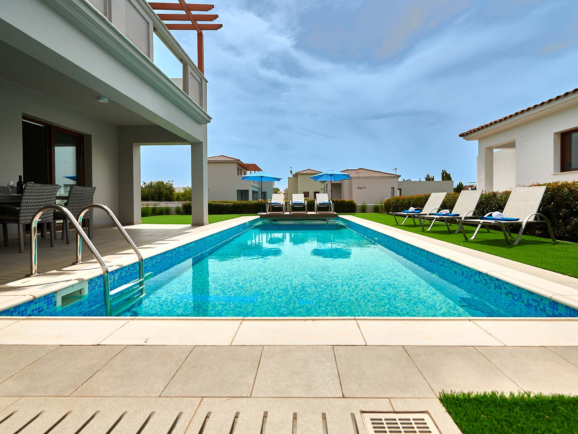 This luxury 3 bedroom villas with private pool are located in the resort centre, right in the heart of Ayia Napa, just a 3 minutes walk to the blue flag Pernera and Katsarka beach. Spacious both inside and out, they are ideal for a relaxing holiday whilst being close to all the resort has to offer. The Nissi Avenue area of the resort has a wide variety of restaurants, bars and shops, with the nightlife centre just a few minutes’ walk away. Both Sandy Bay and the famous Nissi Beach are within easy reach.